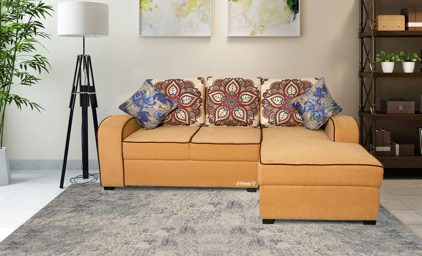 Aria LHS Sectional Sofa in Biege Colour by Jfwoods. Comfortable and elegant seating solution for your everyday needs. Fabric upholstered cushion seating. It makes a perfect corner piece in the bedroom and living room. It is ergonomically designed to offer relaxation and comfort to the body.