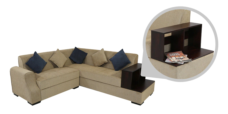 Aroma LHS Sectional Sofa in Beige Colour by Jfwoods. Comfortable and elegant seating solution for your everyday needs. Fabric upholstered cushion seating. It makes a perfect corner piece in the bedroom and living room. It is ergonomically designed to offer relaxation and comfort to the body.