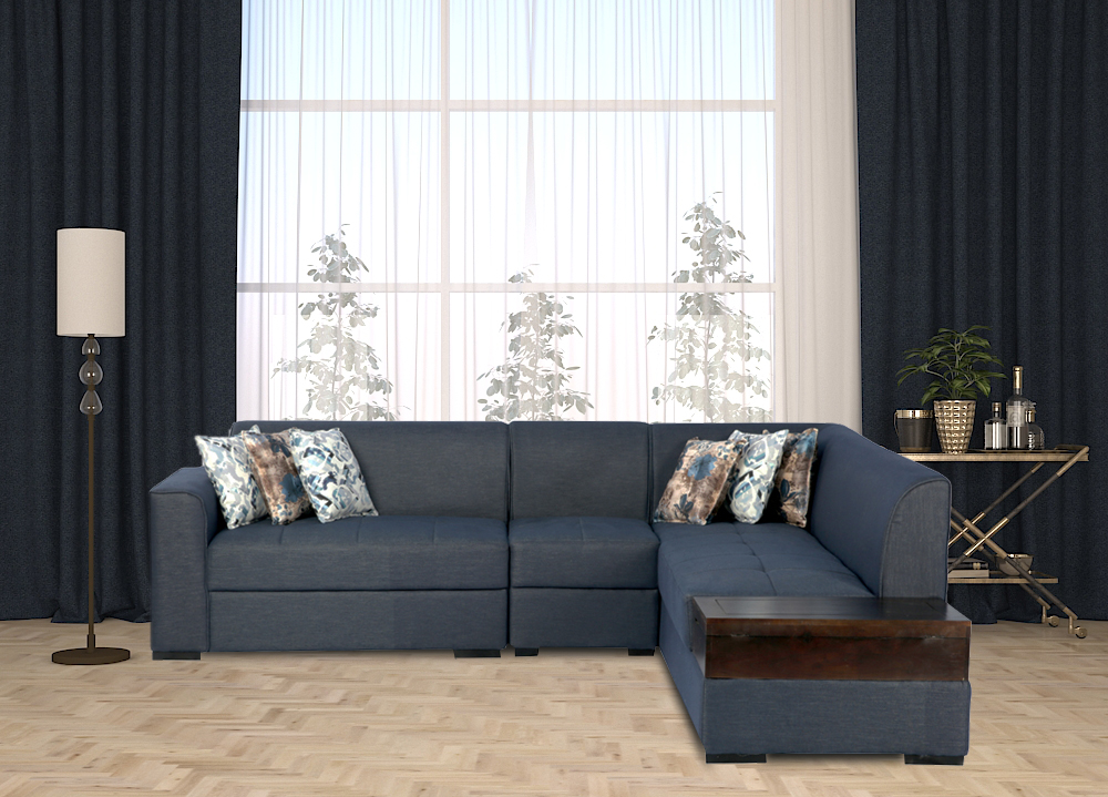 Beverly LHS Sectional Sofa With Pouffe by Jfwoods. Comfortable and elegant seating solution for your everyday needs. Fabric upholstered cushion seating. It makes a perfect corner piece in the bedroom and living room. It is ergonomically designed to offer relaxation and comfort to the body.