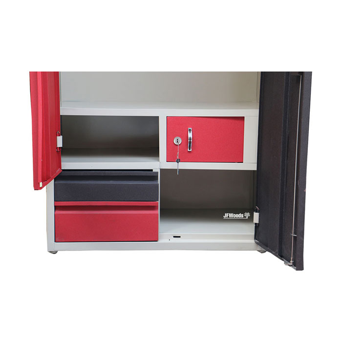 Buster Steel Almirah by Jfwoods. Steel almirah is something where you can store a lot of things. Steel almirah with double doors, with or without lock where you can put and hang your clothes as well. Steel almirah can be placed anywhere in the bedroom for storing clothes, or in the study at home or office to store books and other things. The specialty about almirahs is that they have separate in-built locker facilities, where one can safely keep money and jewels and open it when the need arises.