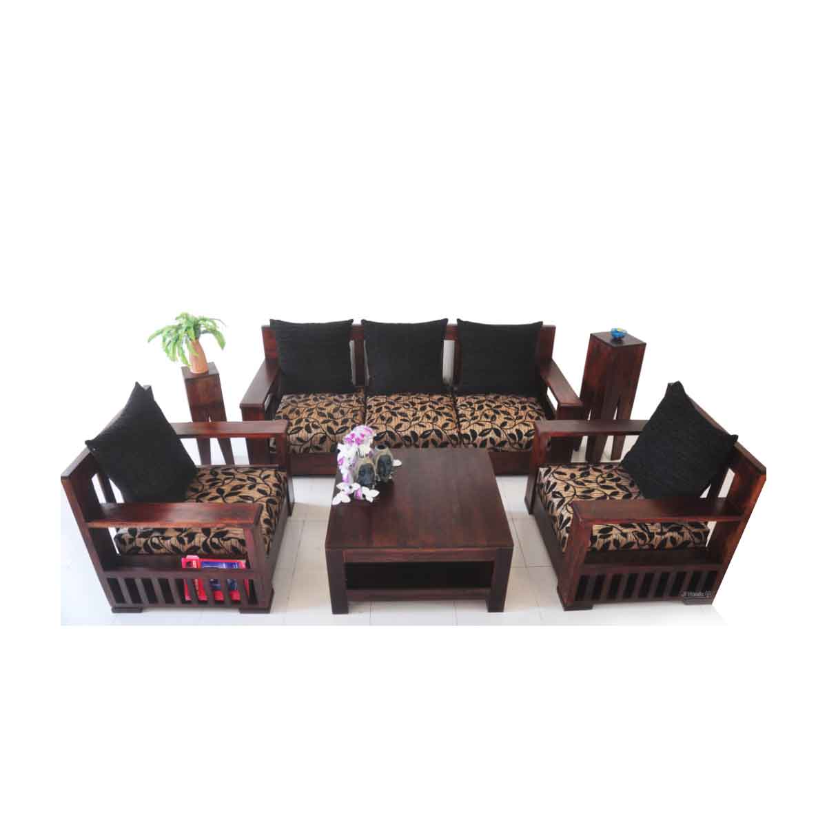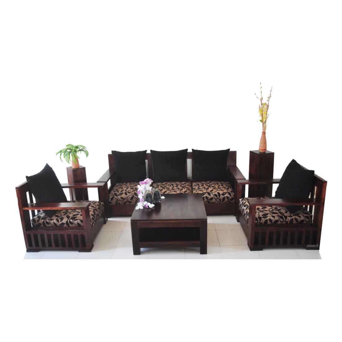 Wooden Structure for Fabric & Leatherette Sofa made in Chemically Treated Kiln dried Hard Wood (Meranti Wood) reinforced by Furniture grade Engineered wood. Tempered S-spring to give the maximum comfort and durability. Webbing construction reinforced to spring & mattress. Polyurethane foam of 32 density. Cushion filled with nonconjugated polyfill.