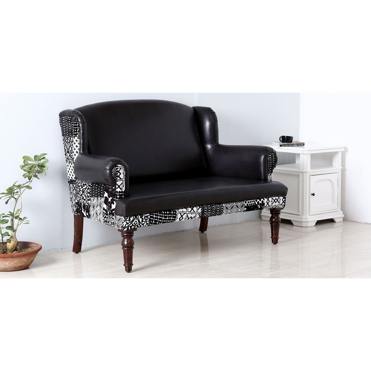 Eva 2 seater sofa is made of rexine and velvet touch fabric. In dual fabric it looks elegant. Their is no compromise on comfort. It is hand-made. It has royal looks and makes your living room more beautiful. It has Round front legs with walnut colorIt has been desgined for use in house, hotels, restaurants, etc.