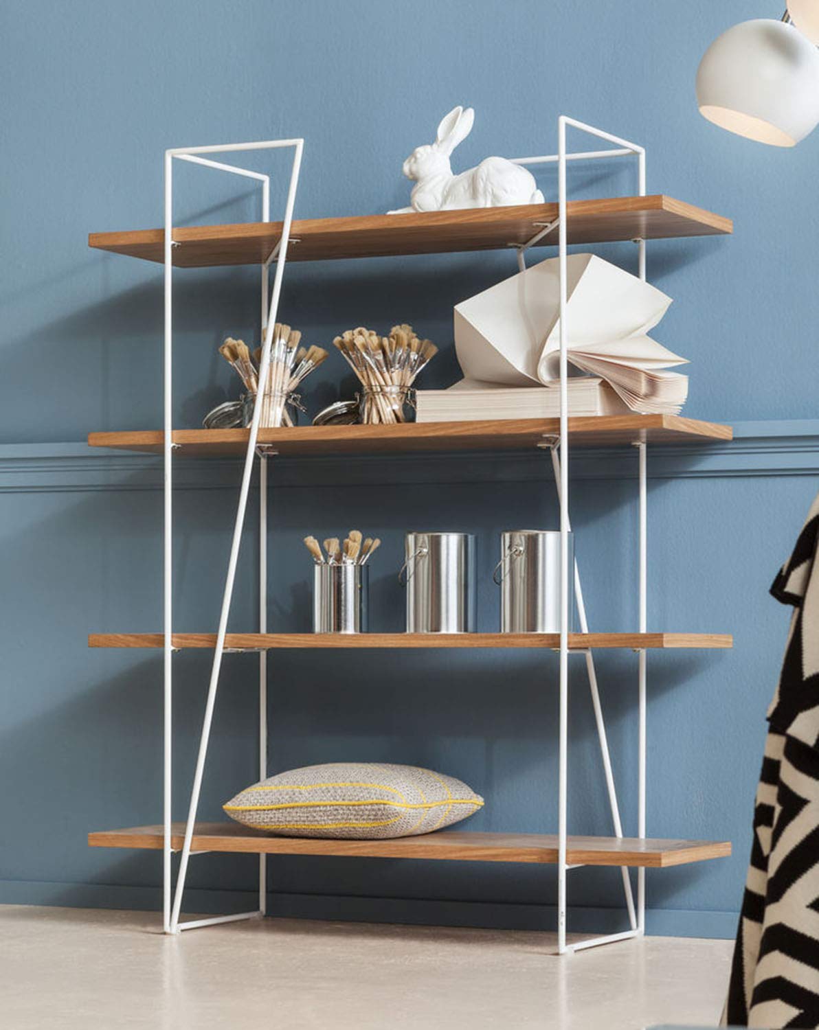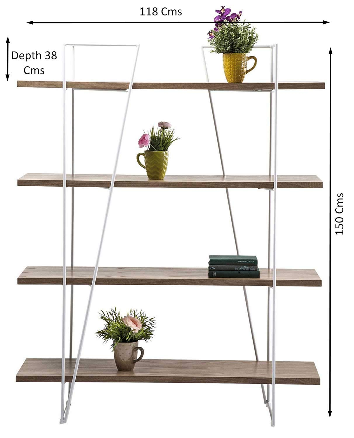 Name: Genie Solid Wood Bookcase with Four Wooden Shelves in Iron Frame