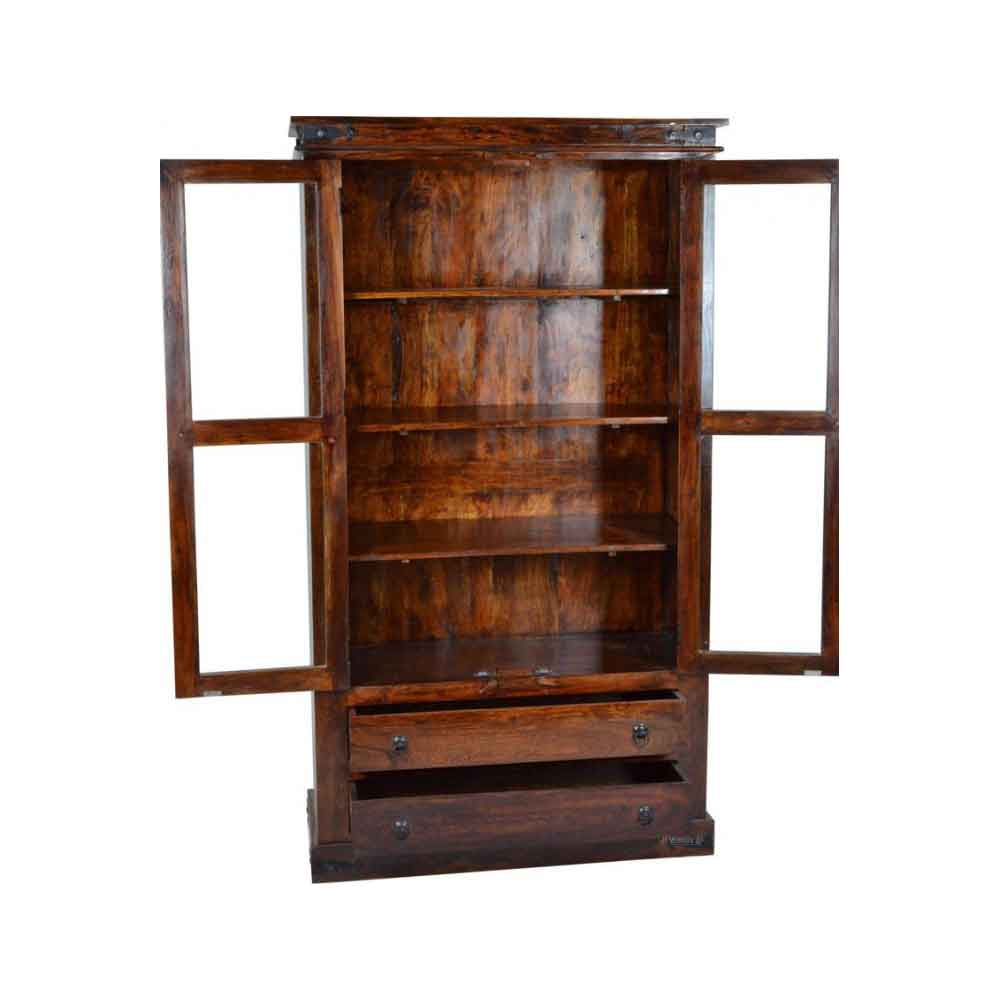Kenzor Solid Wood Bookcase with Glass Doors by Jfwoods