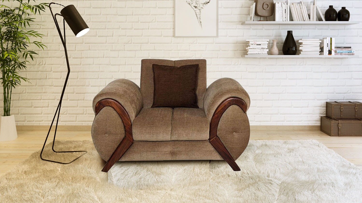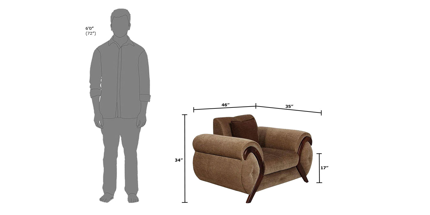 Newyork One Seater Sofa in Cappuccino Colour by Jfwoods. Comfortable and elegant seating solution for your everyday needs. Fabric upholstered cushion seating. It makes a perfect corner piece in the bedroom and living room. It is ergonomically designed to offer relaxation and comfort to the body.