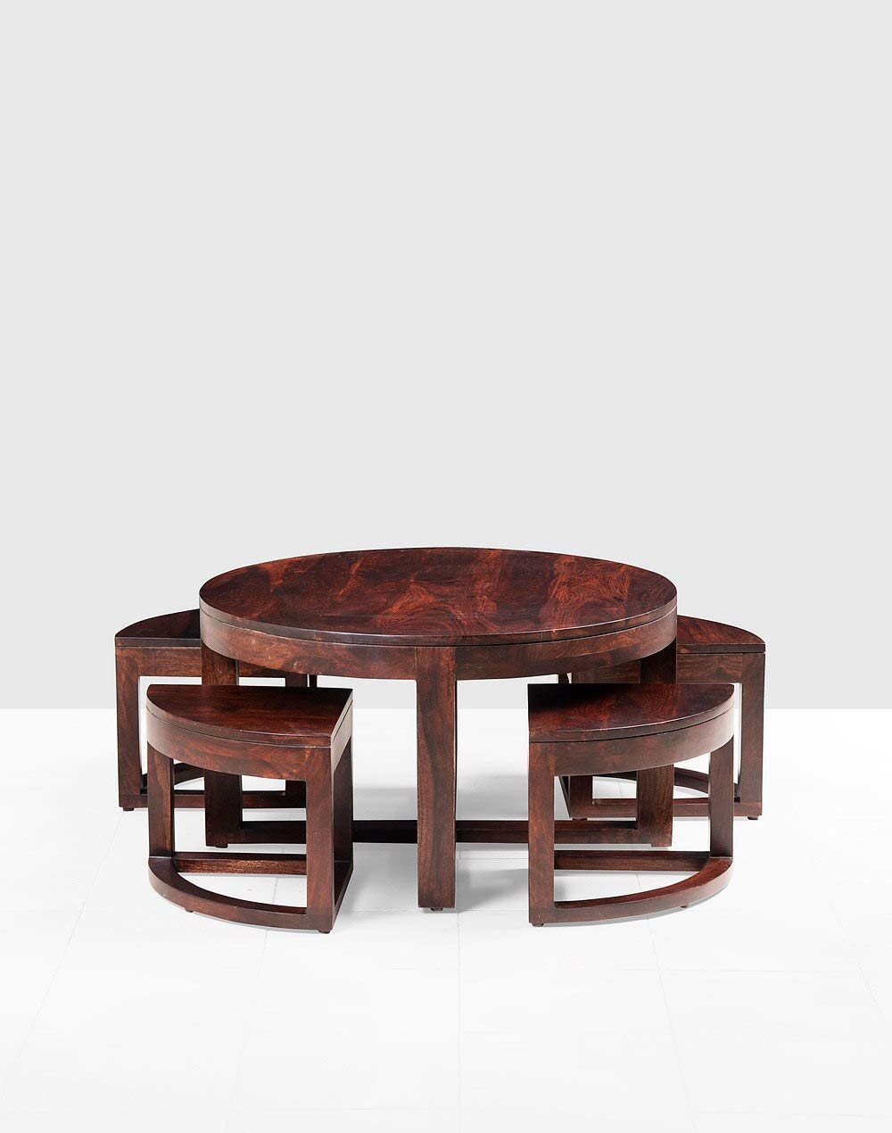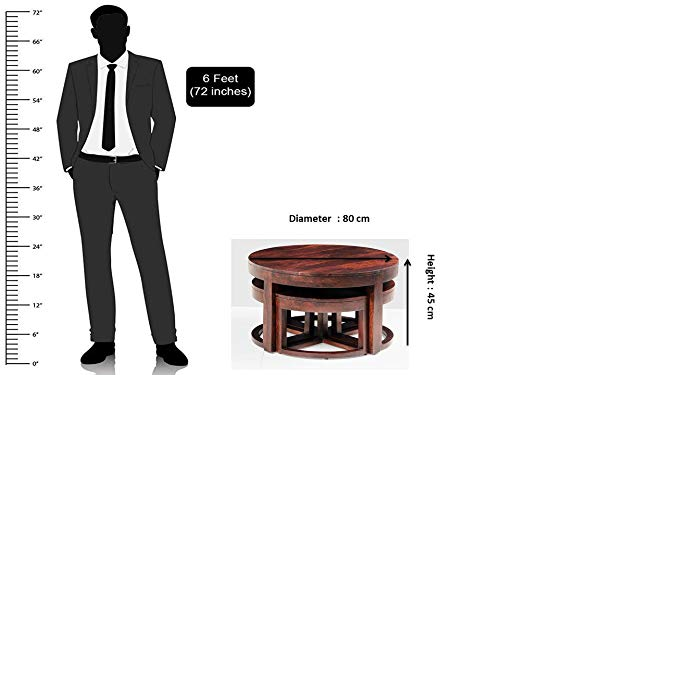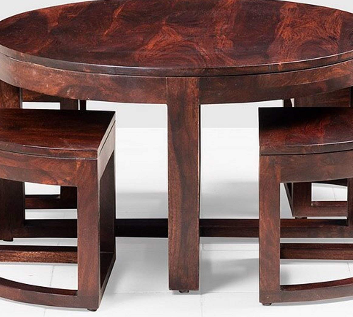 Noah Round Coffee Table with 4 Stools by Jfwoods.Coffee table is manufactured in solid sheesham wood with a natural finish. The table blends perfectly in any home décor as a  coffee table  with your loved ones  a cup of coffee. The coffee table is easy to handle. The interesting pattern makes the coffee table a unique classic of all times.