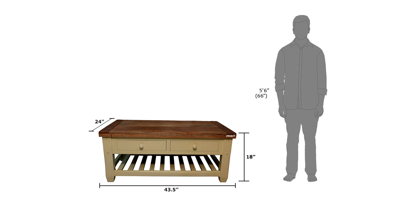Orchid 2 Drawer Coffee Table in Solid Wood by Jfwoods. Coffee table is manufactured in solid Mango wood with a natural finish. The table blends perfectly in any home décor as a  coffee table with your loved ones  a cup of coffee. The coffee table is easy to handle. The interesting pattern makes the coffee table a unique classic of all times.