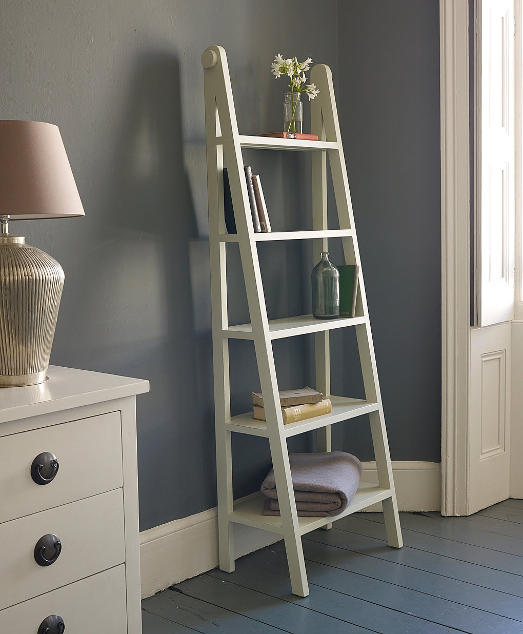 Porche Solid Wood Ladder Bookcase in White Colour By Jfwoods