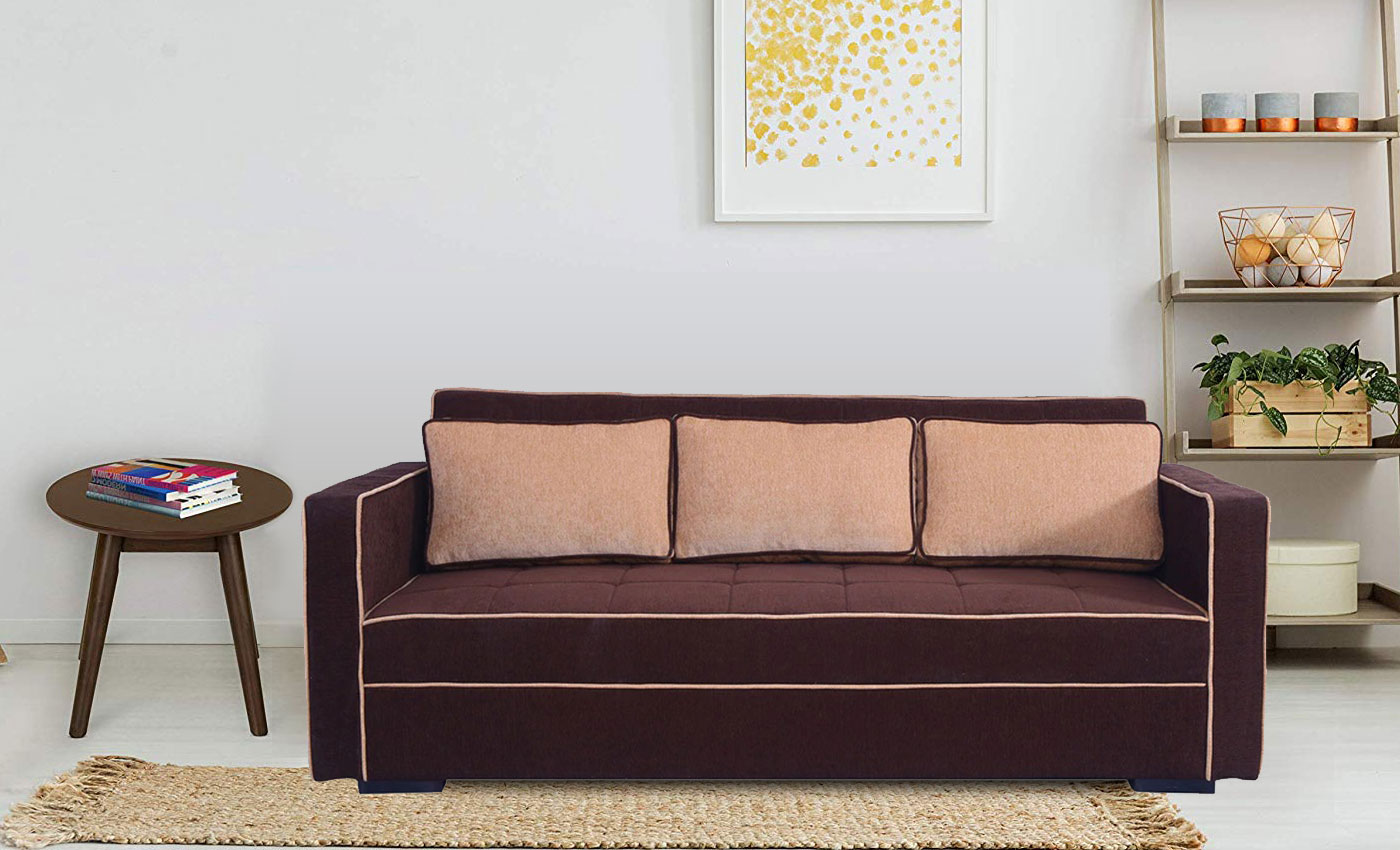 Rusty Three Seater Sofa Cum Bed in Dark Brown Colour by Jfwoods