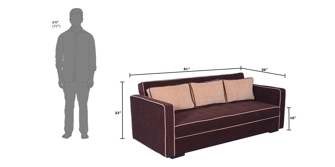 Name: Rusty Three Seater Sofa Cum Bed in Dark Brown Colour