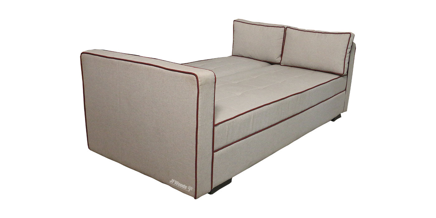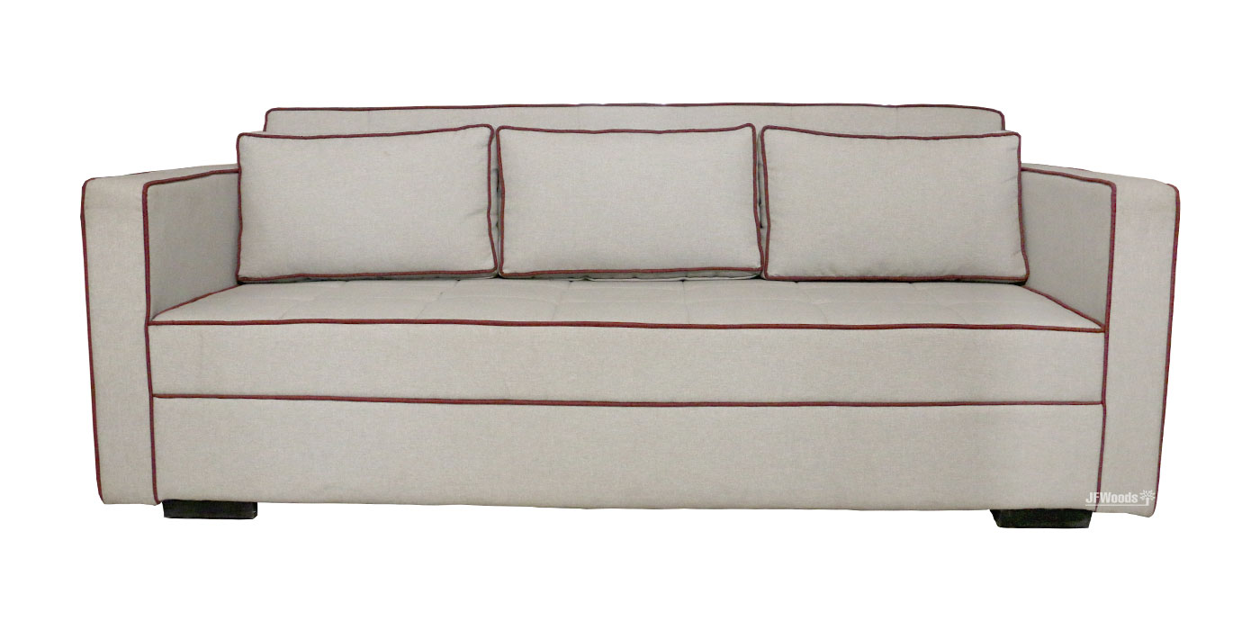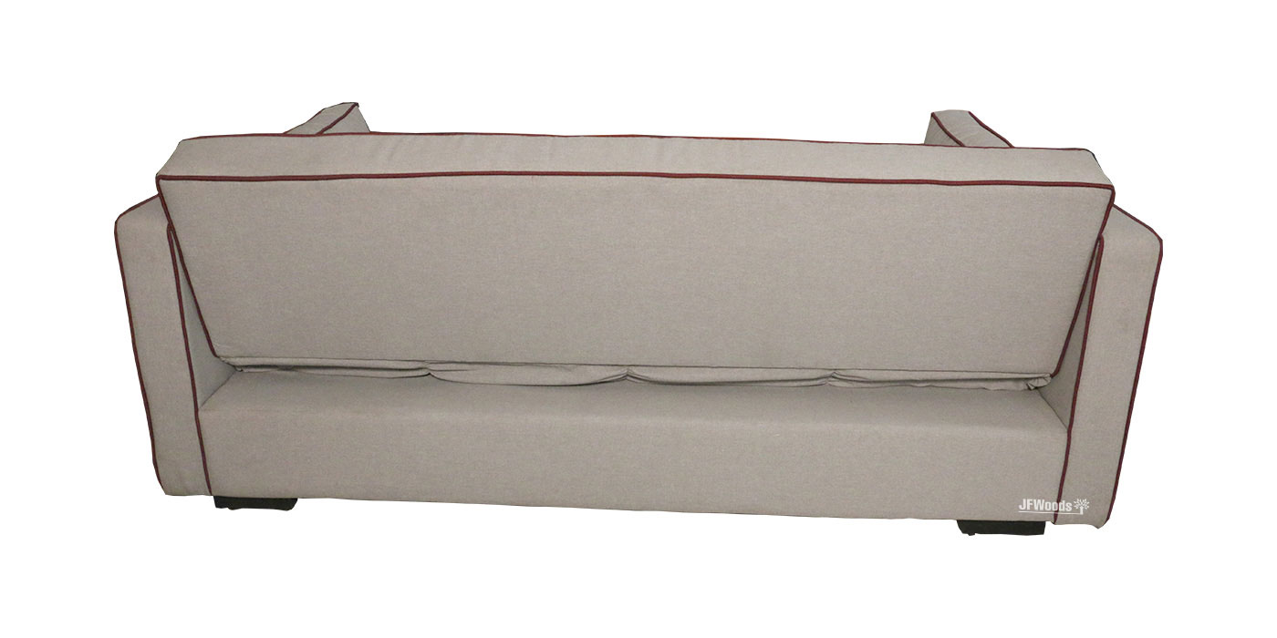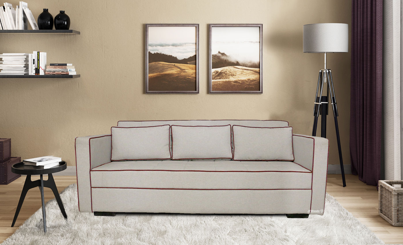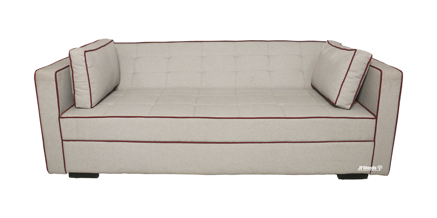 Rusty Three Seater Sofa Cum Bed in Light Beige Colour by Jfwoods. Comfortable and elegant seating solution for your everyday needs. Fabric upholstered cushion seating. It makes a perfect  piece in the bedroom and living room. It is ergonomically designed to offer relaxation and comfort to the body.