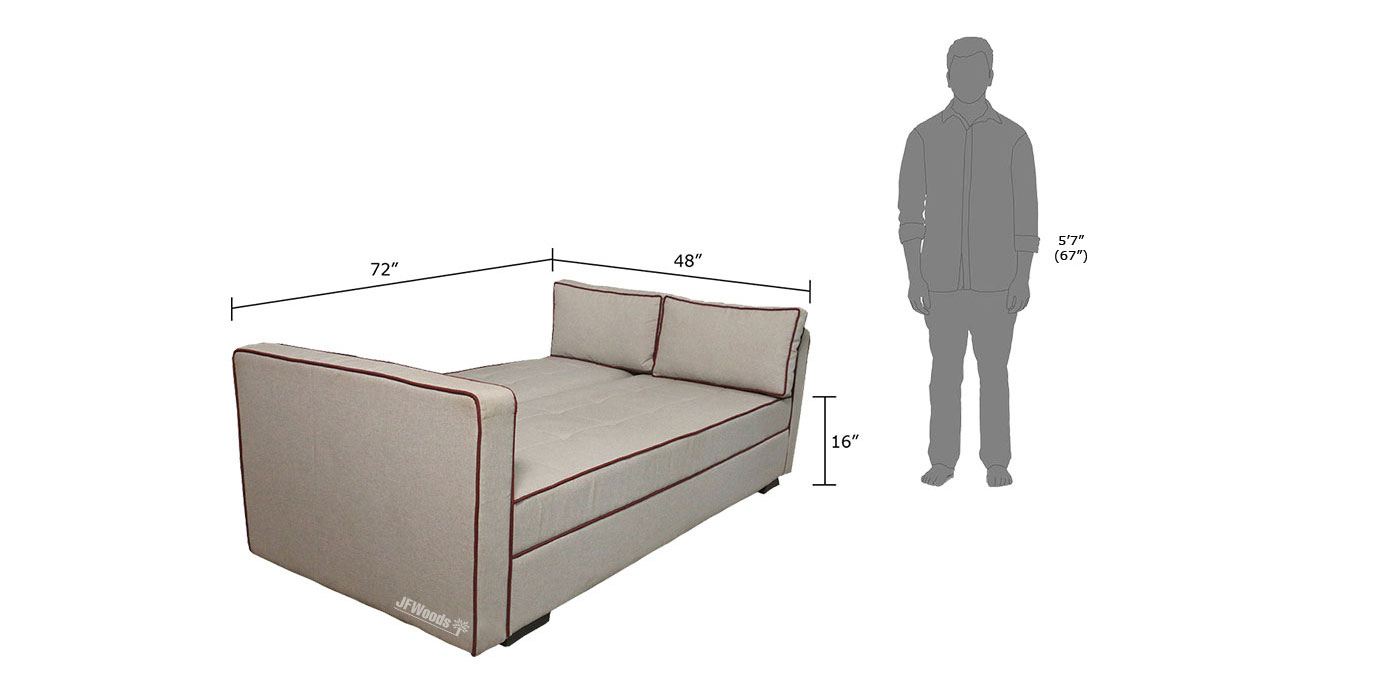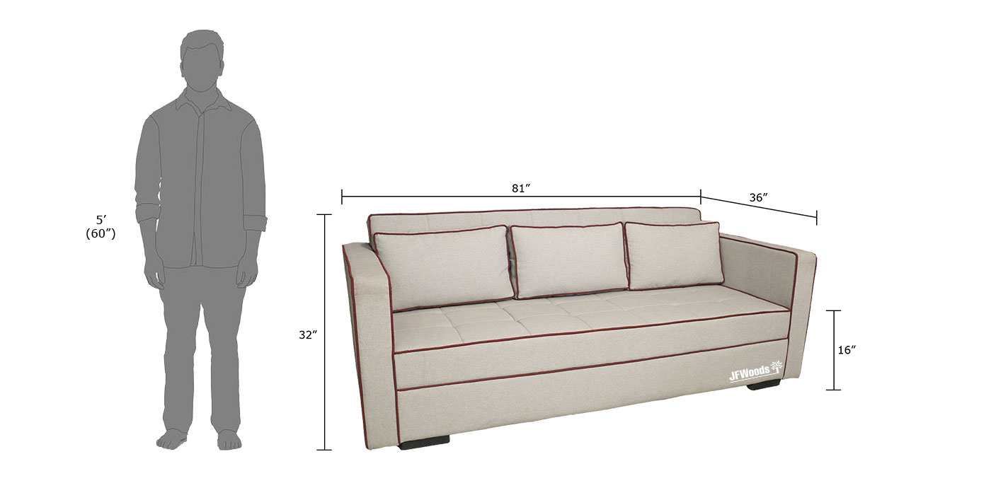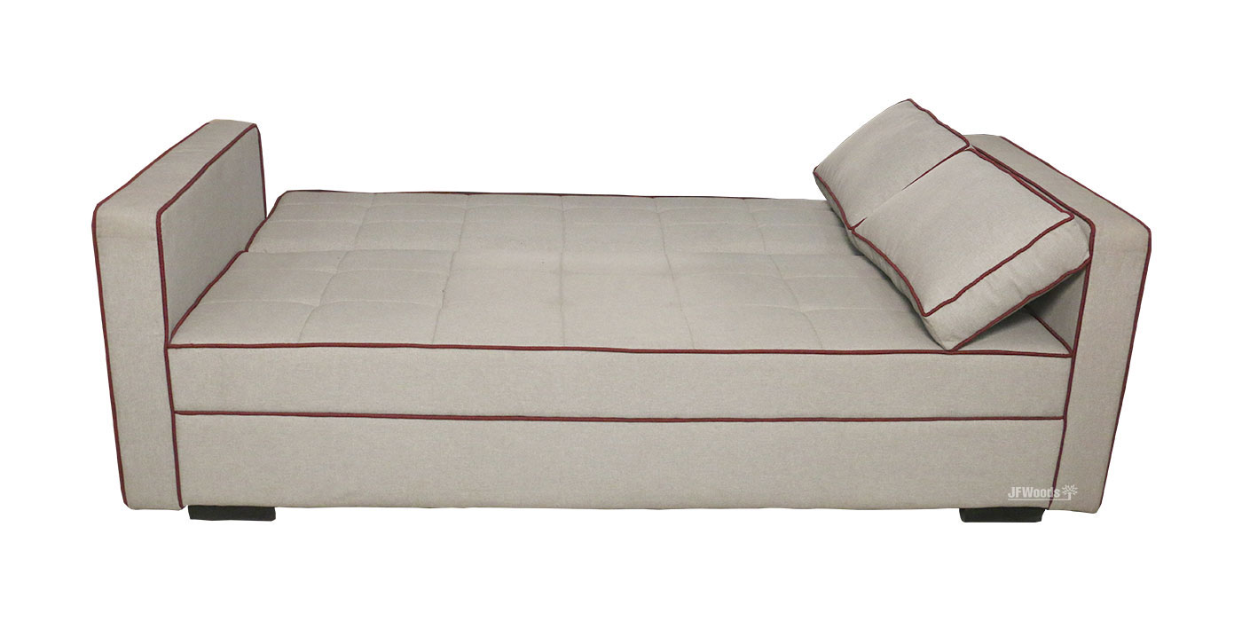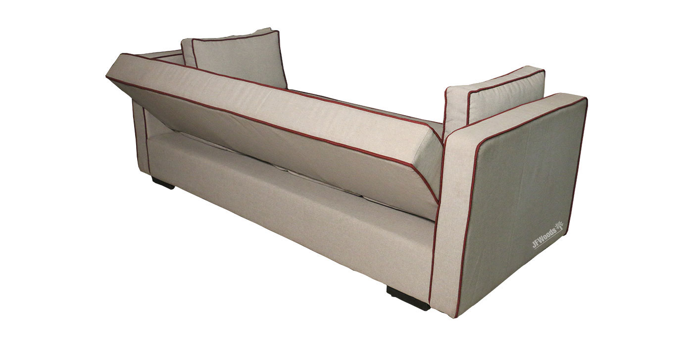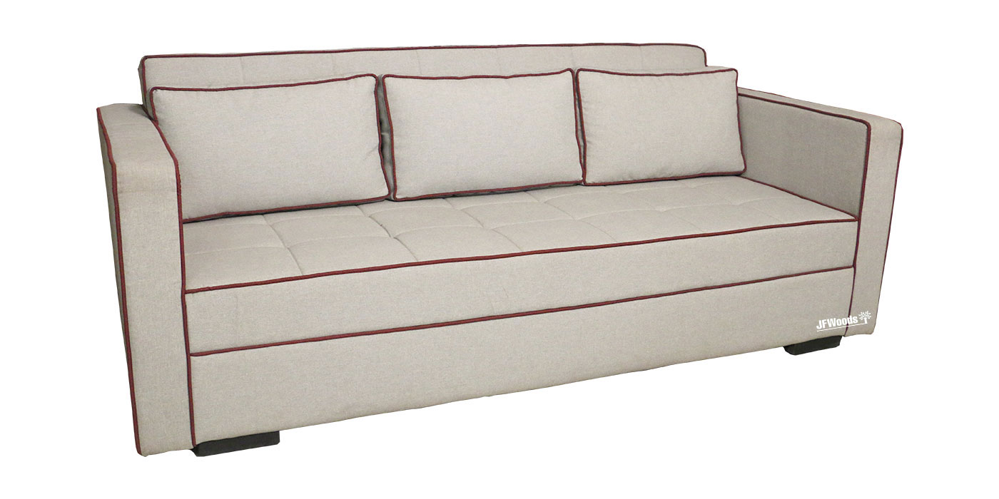 Rusty Three Seater Sofa Cum Bed in Light Beige Colour by Jfwoods. Comfortable and elegant seating solution for your everyday needs. Fabric upholstered cushion seating. It makes a perfect  piece in the bedroom and living room. It is ergonomically designed to offer relaxation and comfort to the body.